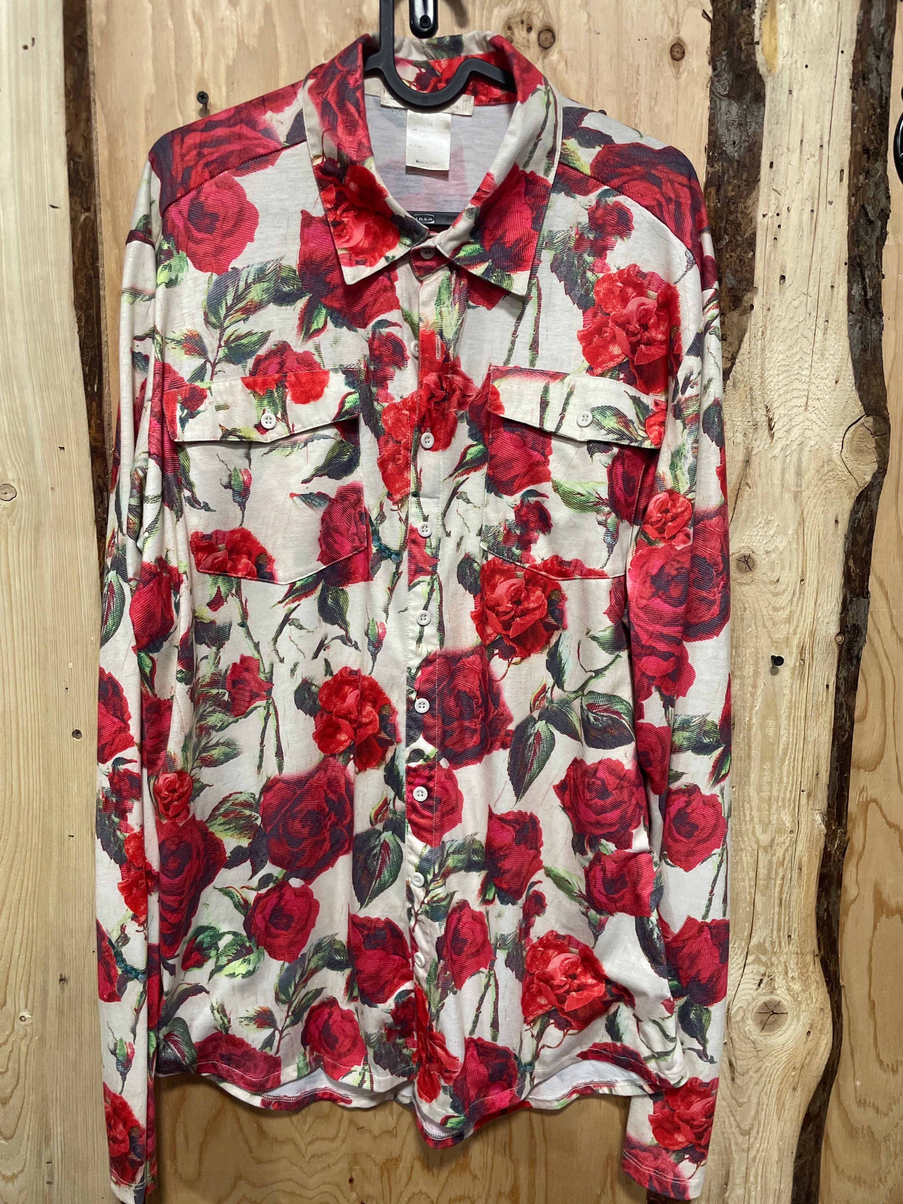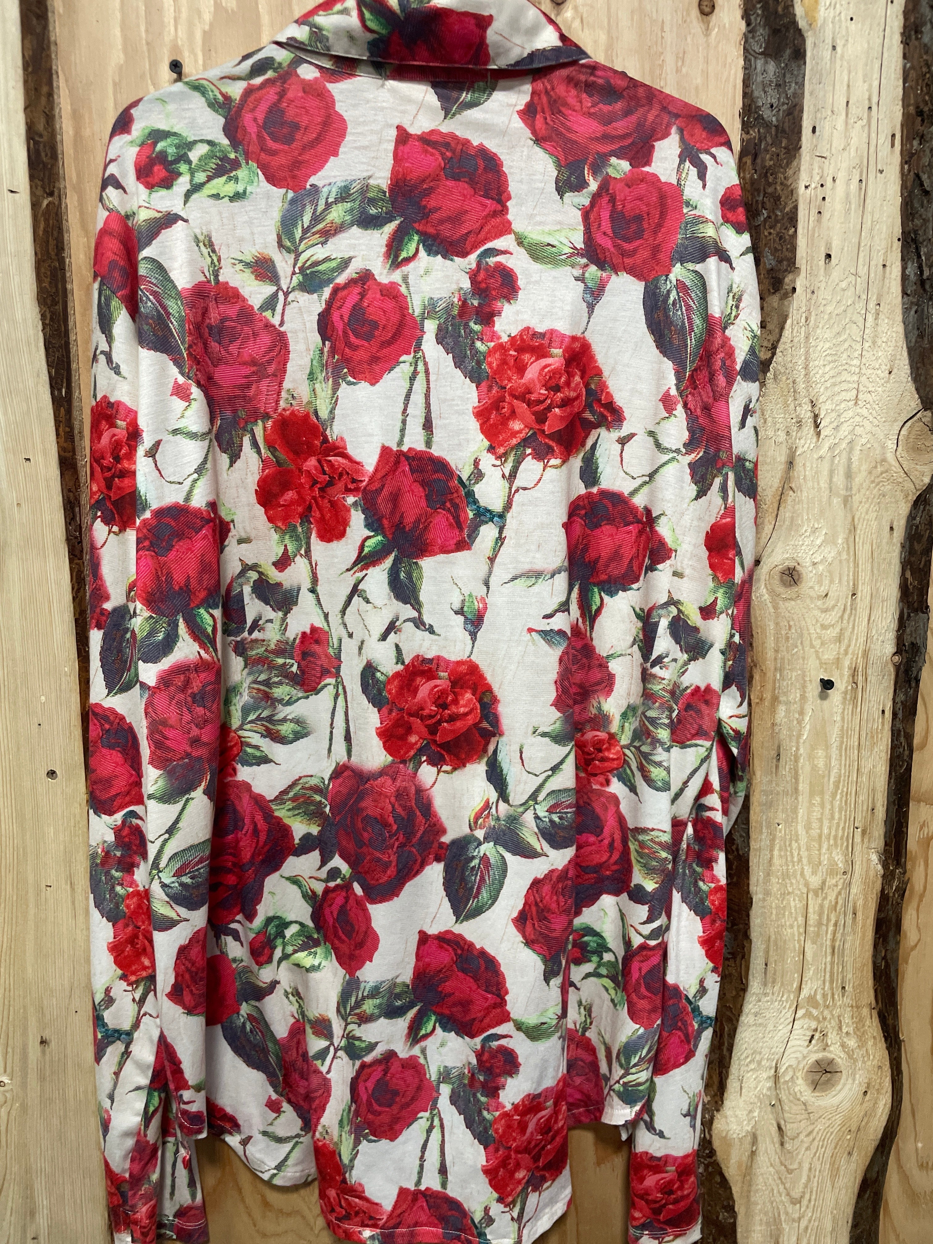 USED-Cowgirl Tuff Rose Patterned Western Shirt-Size XL