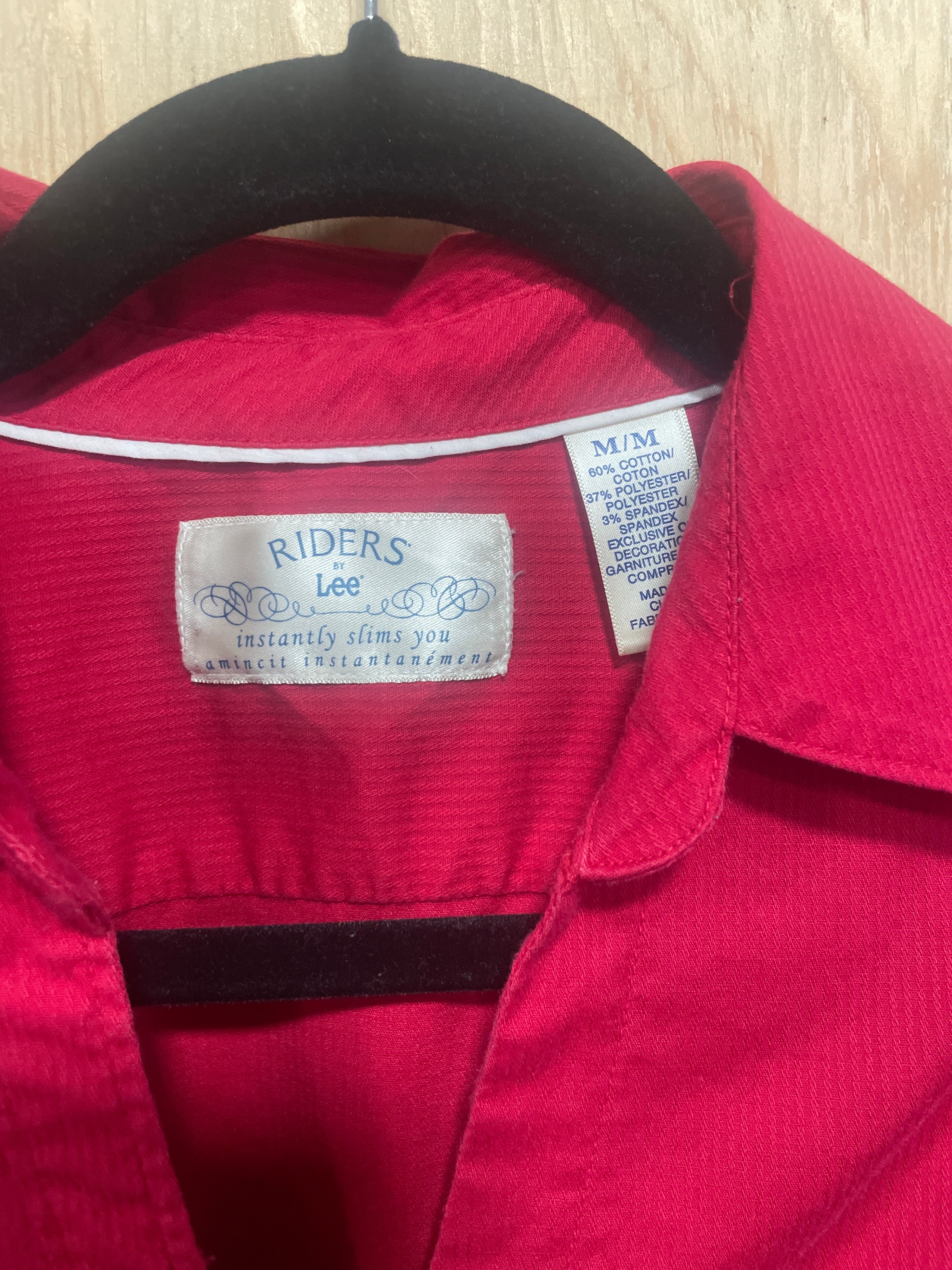 Good used condition Riders by Lee Ladies Red Western Shirt. V neck with hidden Buttons. Size M.
