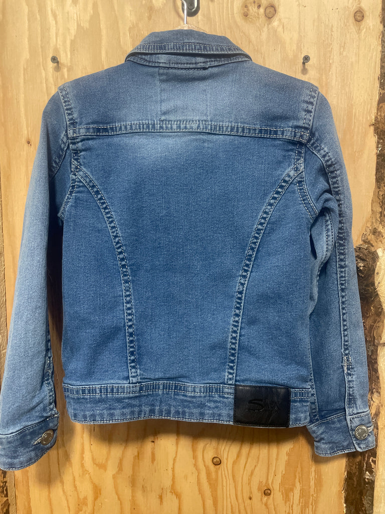 USED-Silver Evelyn Trucker Kids Jean Jacket-Size 6 is backordered and will ship as soon as it is back in stock.