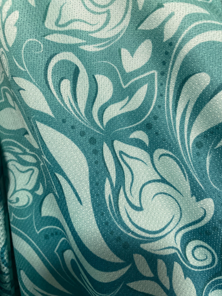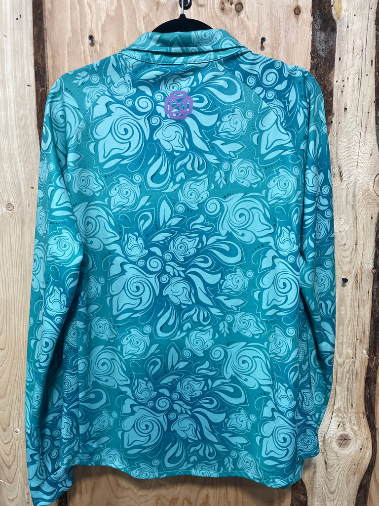 USED- M6 Sport Air conditioned Shirt- Turquoise Floral- Small is backordered and will ship as soon as it is back in stock.