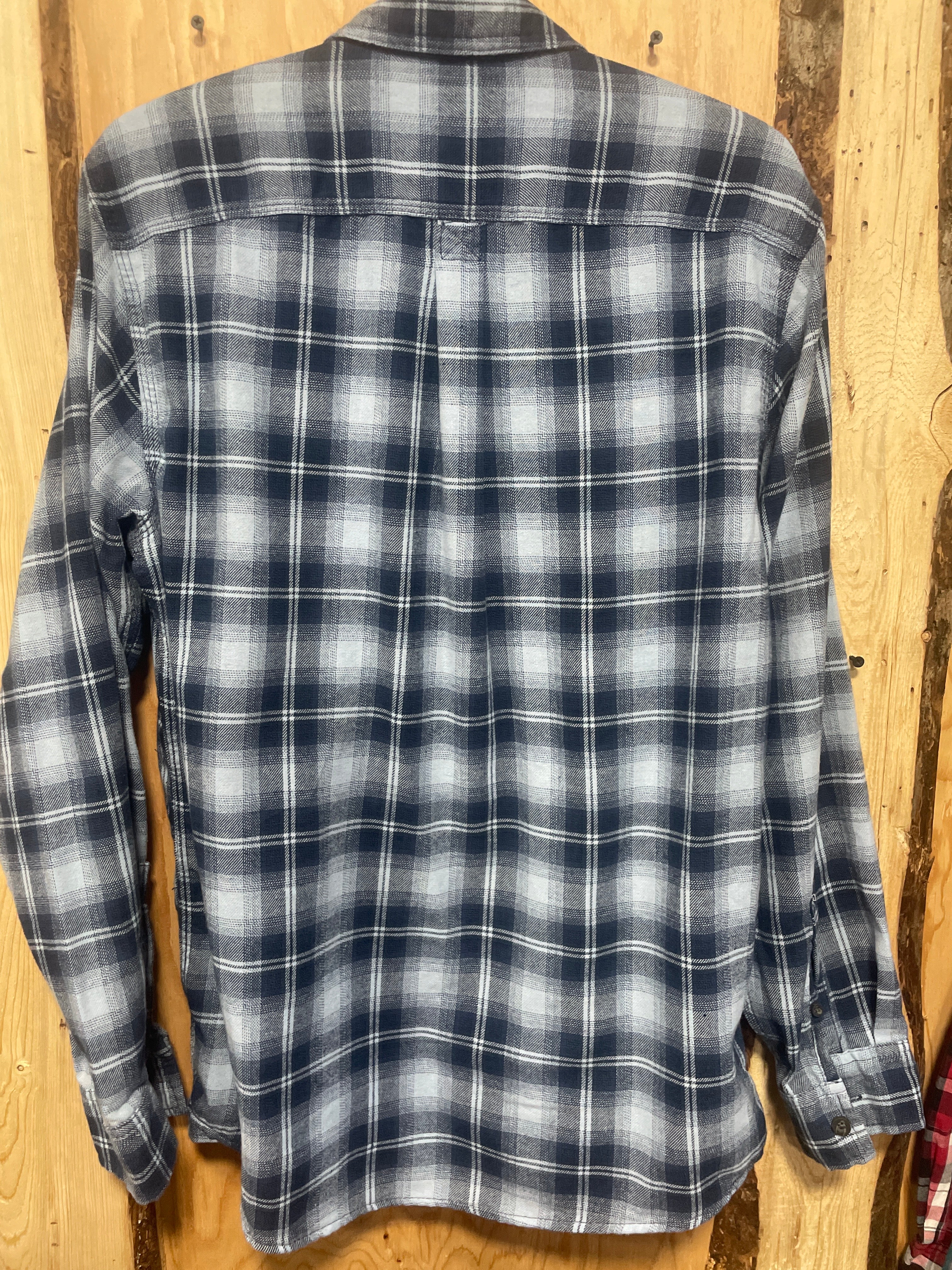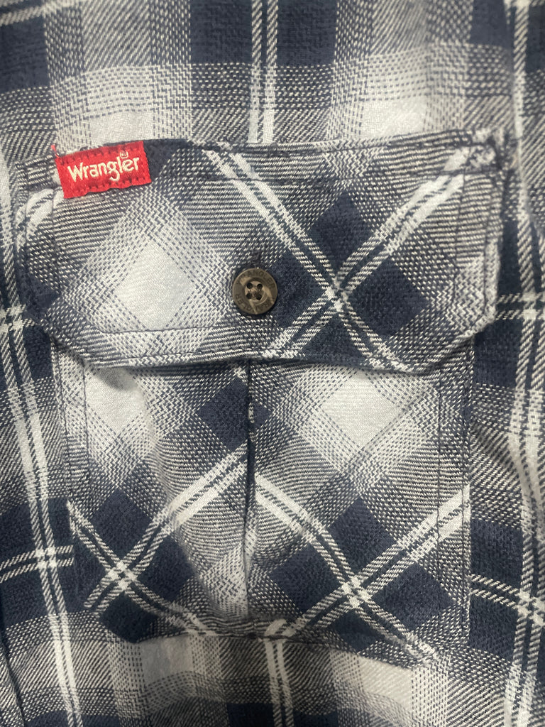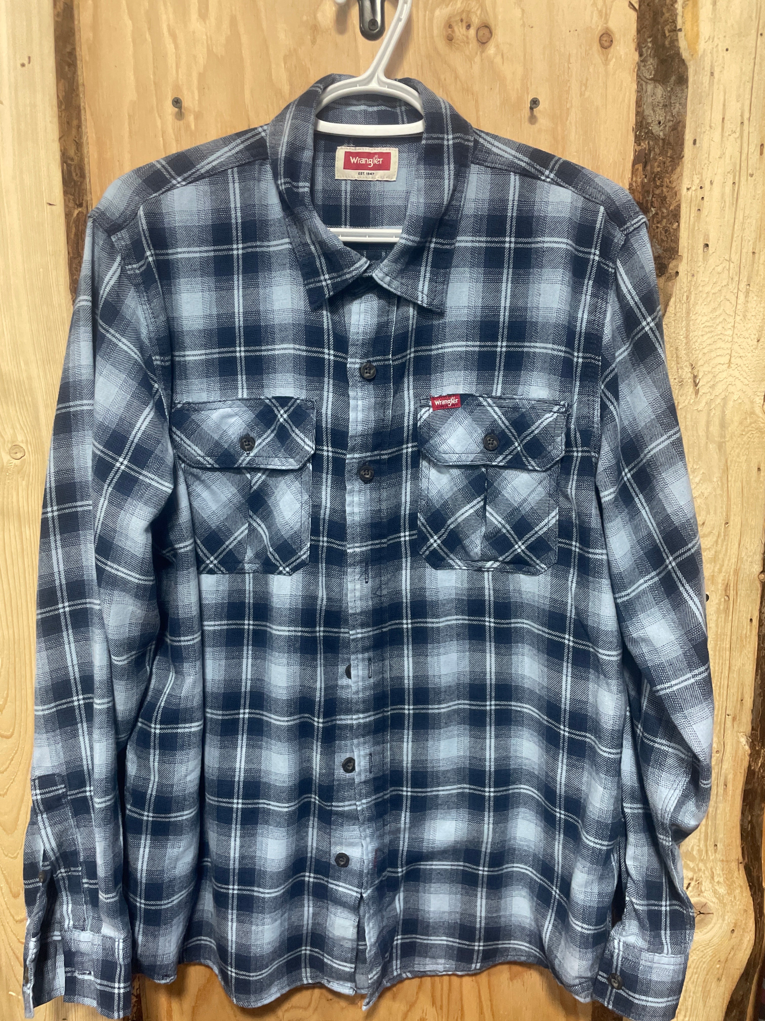 USED-Men's Wrangler Long Sleeve Blue Plaid Flannel-Size M