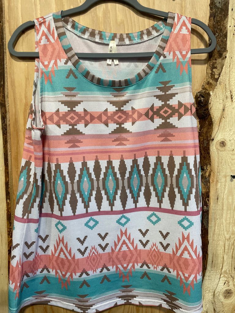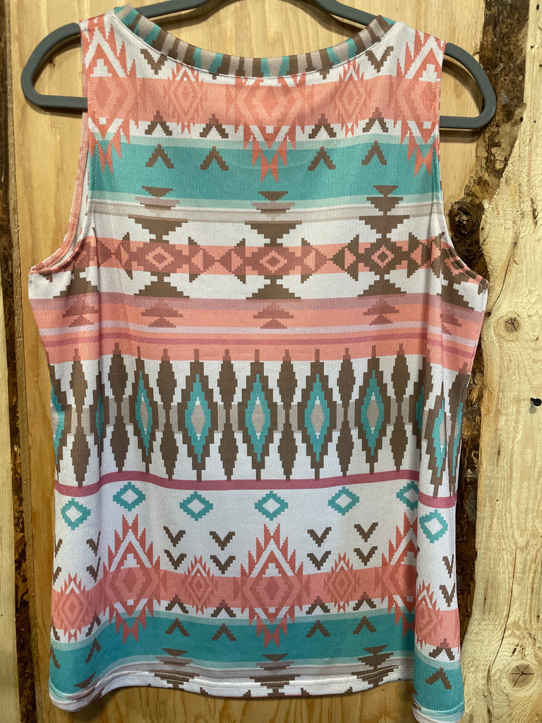 USED- Roper Ladies Jersey Tank Top- Pastel Aztec/Stripes- XL is backordered and will ship as soon as it is back in stock.