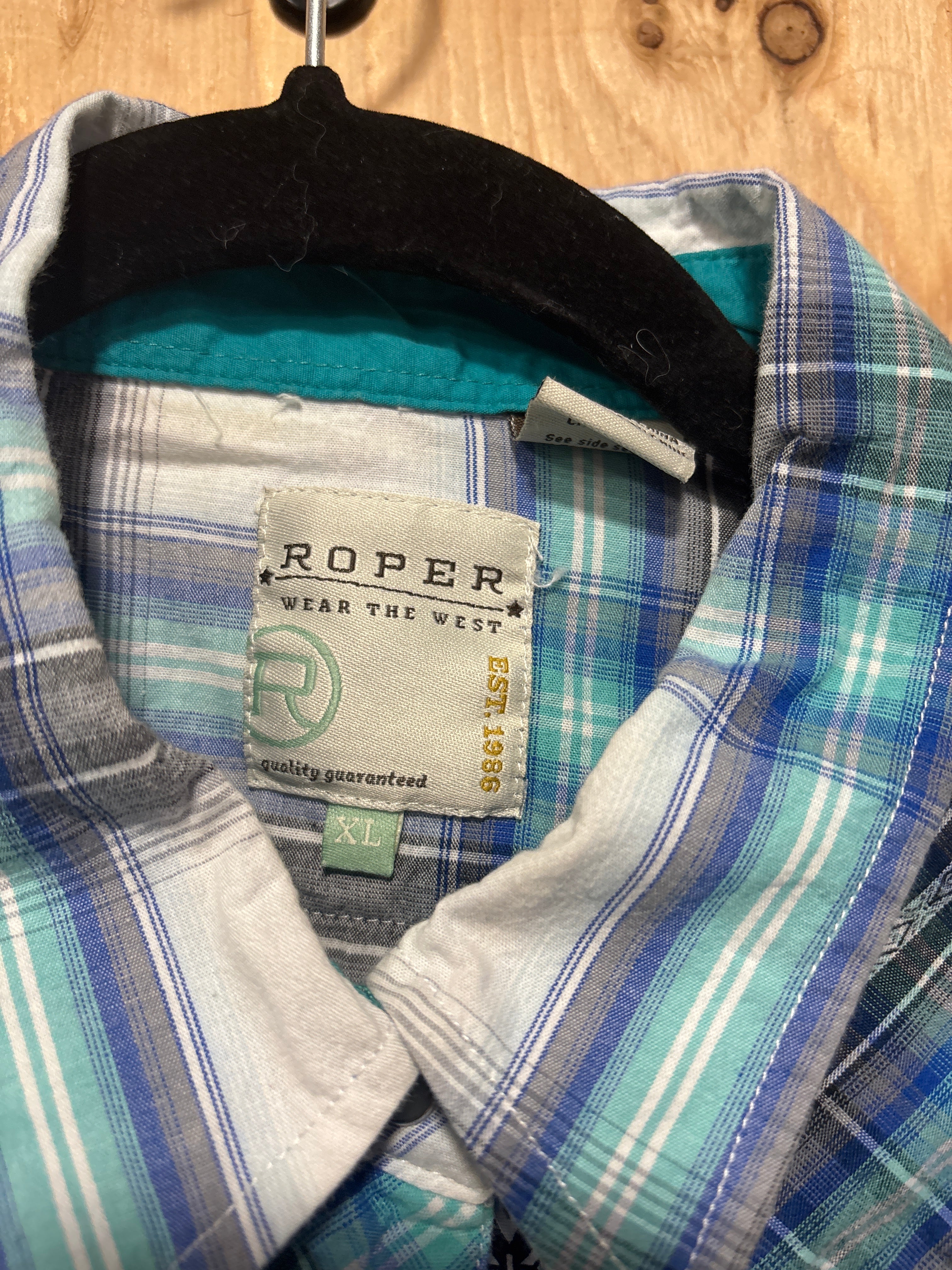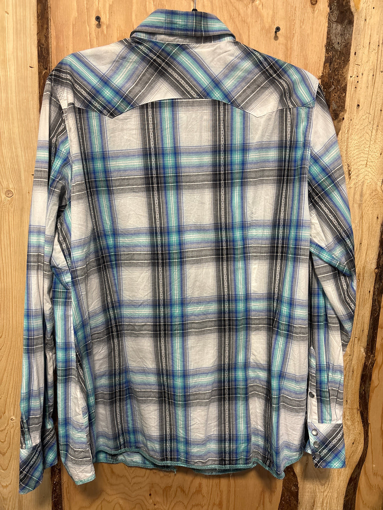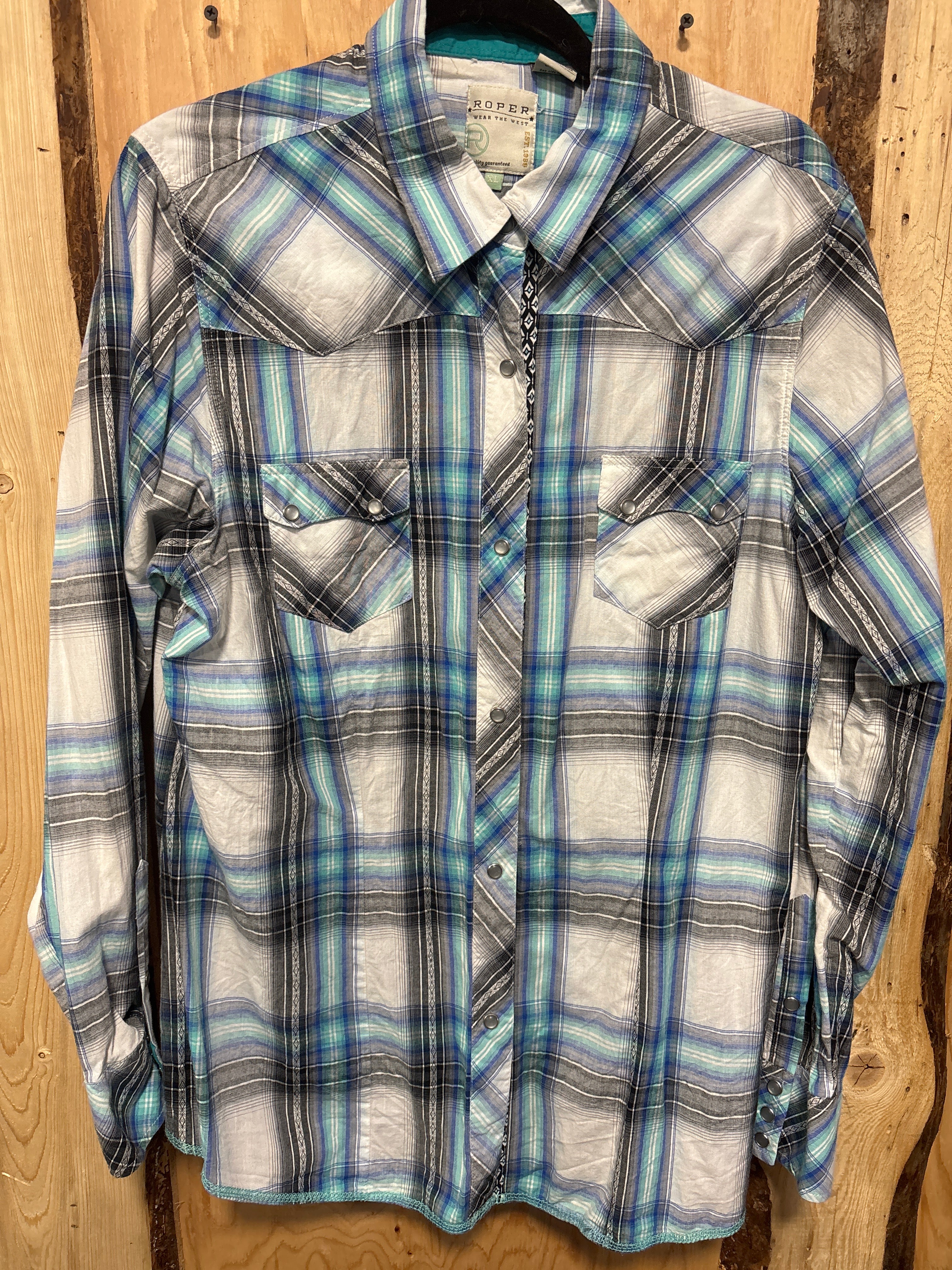 USED- Roper Ladies Western shirt- Blue Plaid- X-Large is backordered and will ship as soon as it is back in stock.