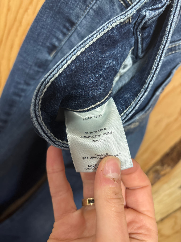 USED- Silver Elyse Slim Boot Jeans- 24/31L is backordered and will ship as soon as it is back in stock.