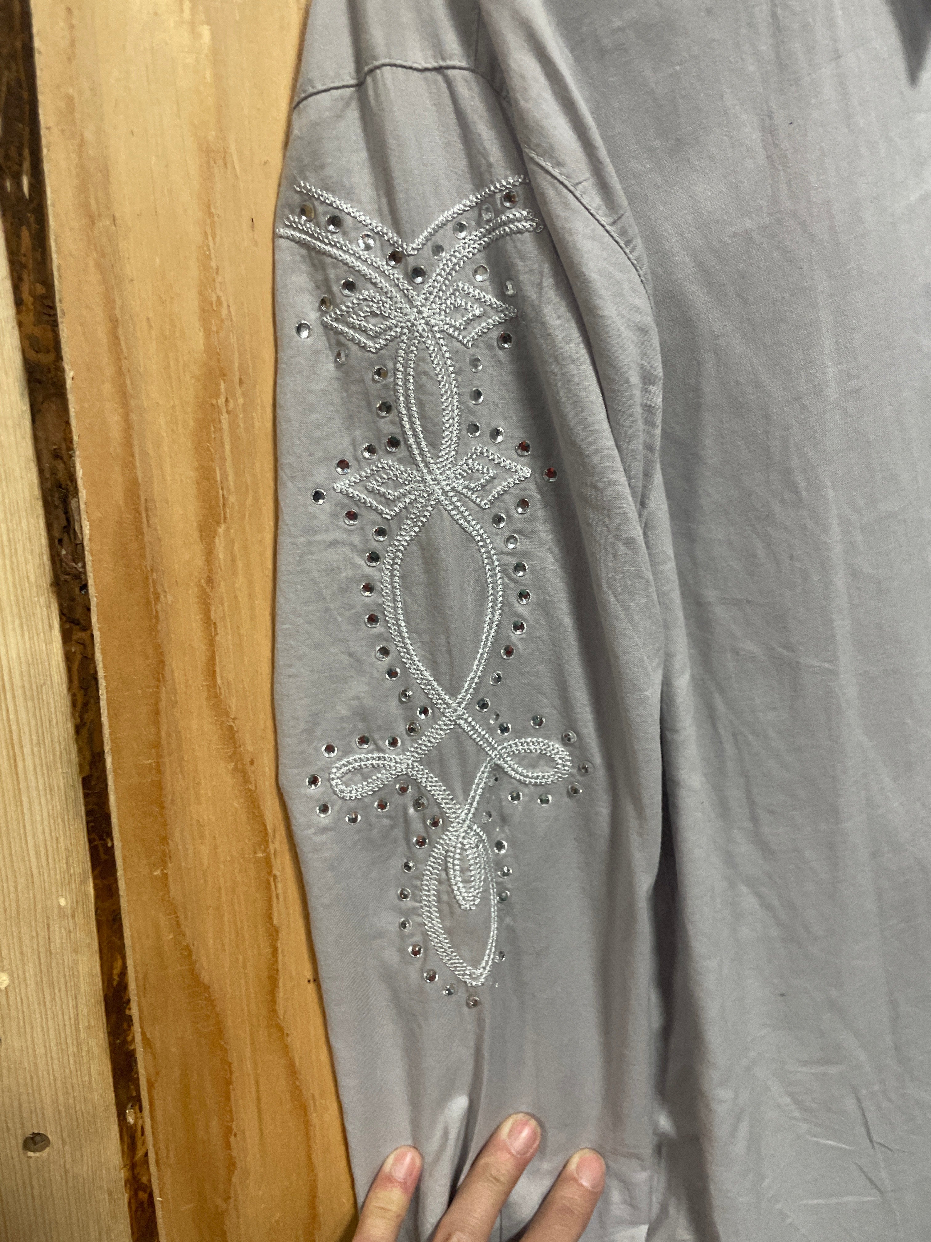 Excellent used condition Ladies Wrangler Western Shirt with Embroidered sleeve. Diamante Snap Buttons.